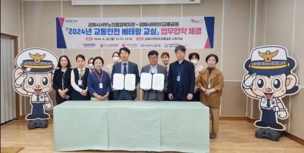 (재)김해시복지재단 김해시서부노인종합복지관과 김해시어린이교통공원은 지난 22일 교통안전 인식개선과 안전한 교통 환경 조성을 위한 '교통안전 베테랑 교실'업무협약을 체결했다고 밝혔다.