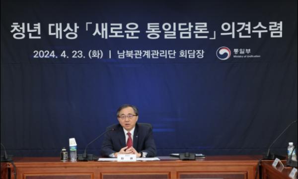 문승현 통일부 차관은 4월 23일 통일부 남북관계관리단 회담장에서 ?새로운 통일담론?에 대한 각 부처 청년보좌역들의 의견을 청취하기 위해 도시락 토론회를 개최했다고 밝혔다.