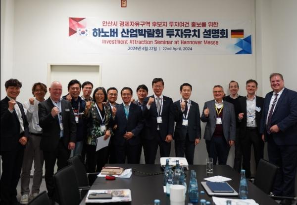 안산시는 앞서 지난 18일 외투기업 유치, 국제교류 협력 등을 위해 시의장, 관내 기업체 관계자 등 20명과 경제사절단을 꾸려 7박 9일간의 일정으로 독일 출장길에 올랐다. 시는 이민근 시장이 22일(현지시간) 하노버 산업박람회에 참가해 현지 기업체를 대상으로 투자유치 설명회(IR)를 진행했다고 23일 밝혔다.