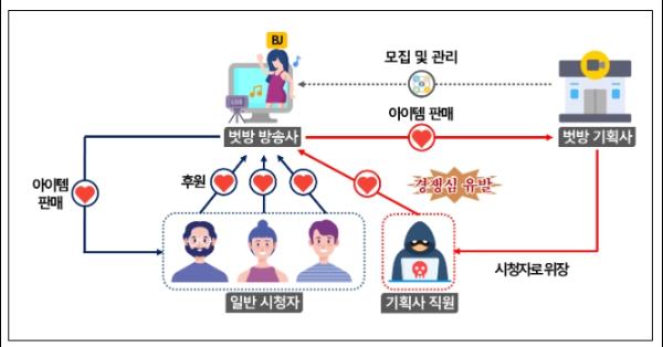일부 기획사는 방송 중 시청자의 실명이 노출되지 않는다는 점을 악용하여, 시청자인 척 위장하고 소속 BJ에게 수억 원에 달하는 금액을 후원하여 다른 일반 시청자가 경쟁심에 더 큰 금액을 후원하도록 부추겼고, 속사정을 알 리 없는 일반 시청자들은 BJ의 관심을 받기 위해 대출까지 받아가며 BJ를 후원했고 이 때문에 생활고에 시달리기도 했다.