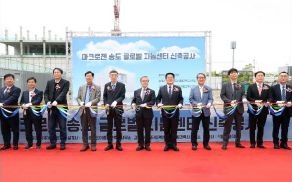 인천경제자유구역청은 24일 송도국제도시 5공구 첨단산업클러스터에서 마크로젠의 송도글로벌지놈센터 착공식이 개최됐다고 밝혔다. 착공식에는 변주영 인천경제자유구역청 차장과 마크로젠 서정선 회장, 김창훈 대표이사 등이 참석했다.