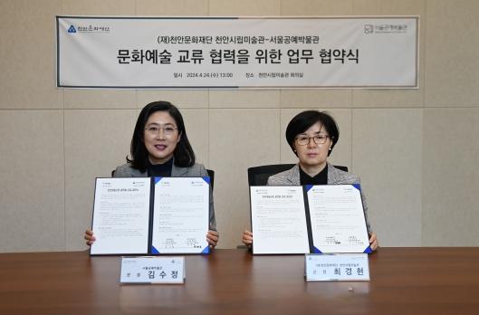 천안문화재단 천안시립미술관은 24일 서울시 서울공예박물관과 ‘공예’를 매개로 두 도시의 상생 발전과 문화예술 교류 확대를 위한 업무협약(MOU)를 체결했다.