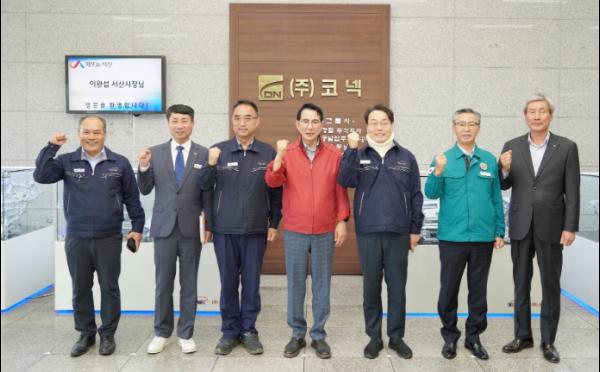 이완섭 서산시장이 24일 충남 서산시 고북면에 소재한 ㈜코넥, ㈜더휴를 방문해 관내 기업 현황을 파악하고 지역 상생 발전을 위한 협력 방안을 논의했다.