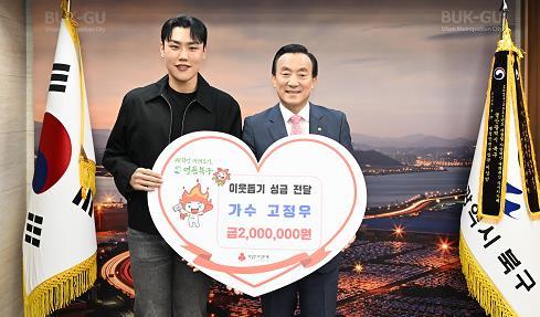 울산 북구 출신 가수 고정우가 24일 북구 지역 저소득세대를 위해 이웃돕기 성금 200만원을 전달했다.