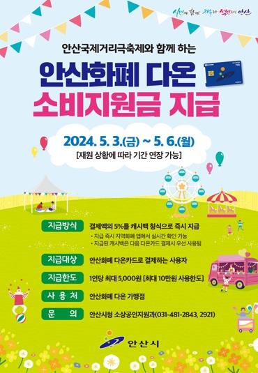 안산시가 5월 3일부터 6일까지 안산화폐 다온 사용자를 대상으로 결제 금액의 5%를 소비지원금으로 지급한다고 25일 밝혔다.