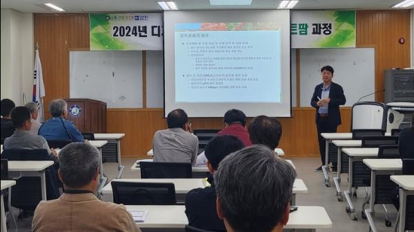 강진군 농업기술센터가 지난 23일 농업기술센터 소회의실에서 디지털농업대학 시설원예스마트팜과정 수업동안 스마트팜의 기본요건으로 꼽히고 있는 ‘양액 재배’ 를 주제로 교육을 진행했다.