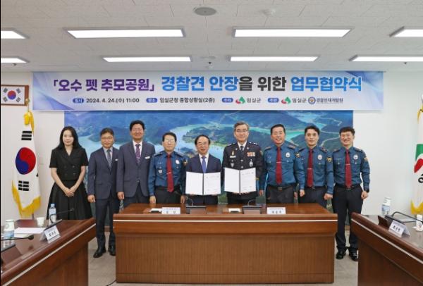 임실군과 경찰인재개발원이 오수 펫 추모공원 내 경찰견 안장 업무를 공동으로 협력 추진하기 위해 지난 24일 업무협약을 체결했다.