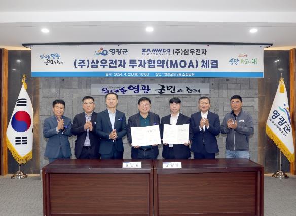 영광군은 지난 4월 23일 알루미늄 부품 생산업체인 (주)삼우전자(대표 김동수)와 투자협약(MOA)을 체결했다.