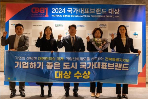 전북특별자치도는 25일 엠버서더서울풀만호텔에서 개최된 ‘2024 국가대표브랜드 대상’ 시상식에서'기업하기 좋은 도시 부문 대상'을 수상했다고 밝혔다.