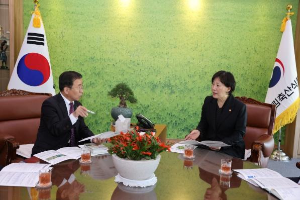 김문근 단양군수는 25일 농촌협약식 이후 송미령 농림축산식품부 장관을 별도로 만나 지역 현안을 건의했다.