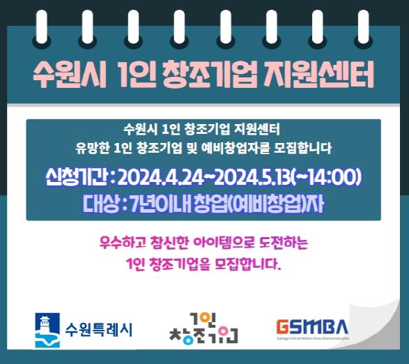 수원시 ‘1인 창조기업지원센터’(경기지방중소벤처기업청 4층)는 제조·지식서비스 융합 분야 1인 창조기업을 육성하는 기관이다. 1인 창조기업은 창의성과 전문성을 갖춘 1인 또는 5인 미만 공동사업자로 상시근로자가 없는 업체다.