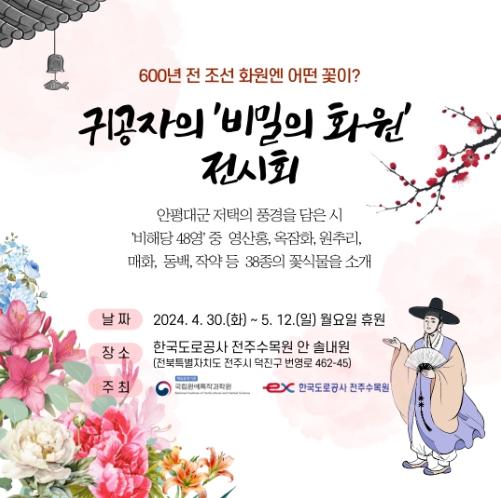 농촌진흥청은 한국도로공사 전주수목원과 함께 수목원 안 솔내원에서 4월 30일부터 5월 12일(월요일 휴원)까지 ‘귀공자의 비밀의 화원’ 전시회를 연다고 밝혔다.