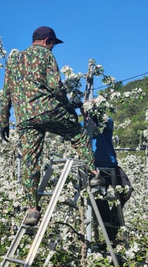 장수군은 25일~26일 이틀간 함양군 공공형 계절근로자 6명이 장수군 농가에 파견돼 사과 적화작업에 동참했다고 밝혔다.
