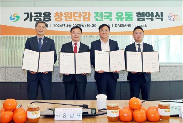 창원특례시는 대표 특산물인 창원단감이 전량 공급된 대상 복음자리 창원단감잼 출시를 기념하고 이후 전국 유통 및 대량소비를 위해 29일 서울특별시 소재의 ㈜대상 마곡연구소에서 ‘가공용 창원단감 전국 유통 4자 협약’을 체결했다고 밝혔다.