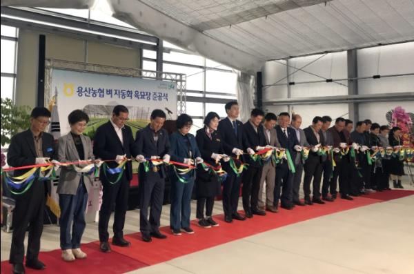 장흥군은 29일 용산농협 육묘장에서 지역농업인 등 100여명이 참석한 가운데‘용산농협 벼 자동화 육묘장’준공식을 가졌다고 전했다.