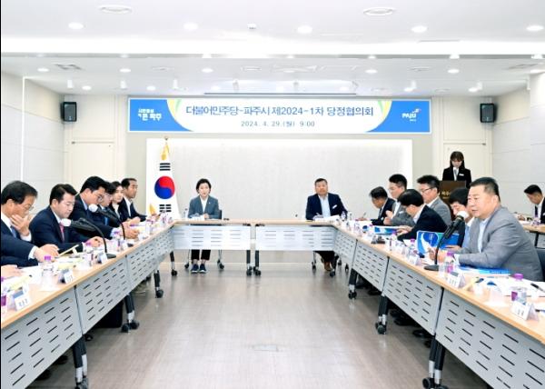 파주시는 지난 29일 지역 국회의원 등과 함께 의원 공약사업 및 주요 현안사업 추진 계획을 함께 논의하기 위한 당정협의회를 열었다.