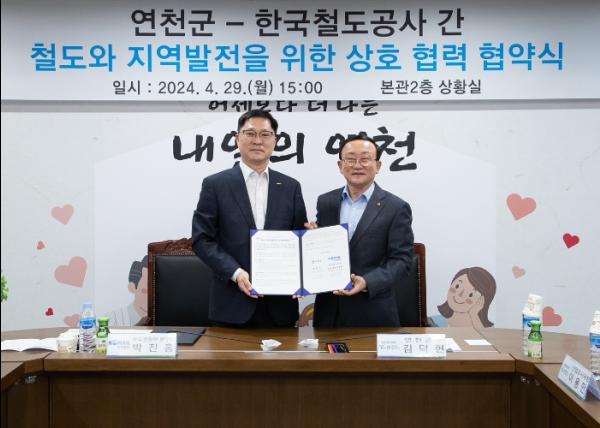 연천군과 한국철도공사 수도권동부본부는 29일 군청 본관 2층 상황실에서 ‘철도와 지역발전을 위한 협약’을 체결했다고 밝혔다.