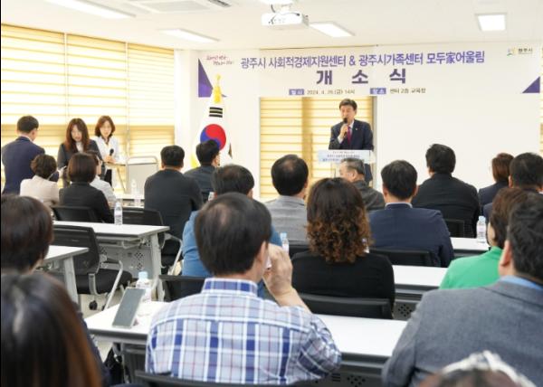 광주시는 2016년 ‘사회적경제 활성화 지원 조례’를 제정해 2019년 전담팀으로 사회적 경제팀을 꾸렸으며, ‘광주시 사회적경제발전 5개년 계획’을 수립해 육성해왔다.이에 따라 2022년 6월 도시재생세대융합혁신플랫폼A를 건립하며 ‘사회적경제지원센터’ 및 ‘가족센터 모두家어울림’입점을 확정했고, 올해 4월 두 센터를 개소했다.