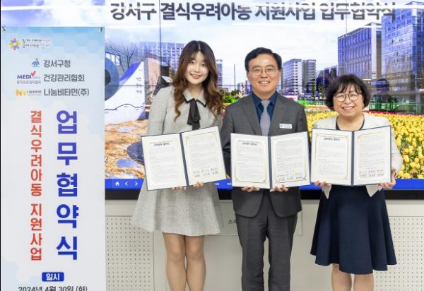 서울 강서구는 저소득 가정 어린이들의 건강한 성장을 위해 한국건강관리협회, 나눔비타민(주)와 손을 잡았다.