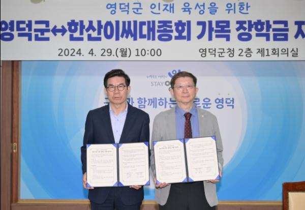 영덕군과 한산이씨 대종회가 지역 인재 육성을 위해 지난 29일 장학금 지원 업무 협약을 체결했다.