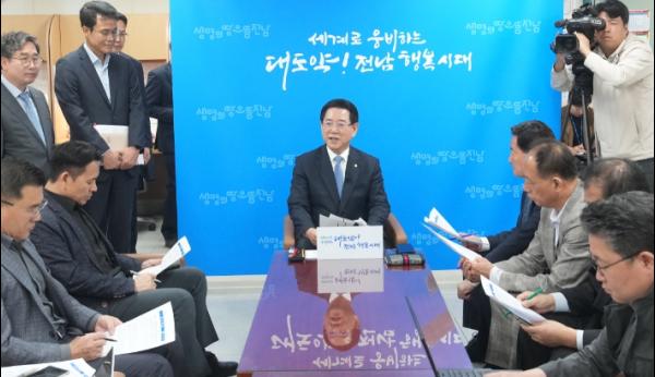 공모에 따른 지역 갈등에 대해선 “공모가 갈등을 부추긴다고 주장하는 것 자체가 오히려 갈등을 조장하는 것이다. 경쟁은 하되 지나친 갈등은 오히려 정부에 대한 전남의 발언권을 약화시킬 수 있으니, 양 대학이 공모에 응하길 바란다”며 “두 대학이 공모에 응하도록 최대한 노력하겠지만, 어느 단계에 가면 절차를 계속 미룰 수는 없는 입장”이라고 덧붙였다.