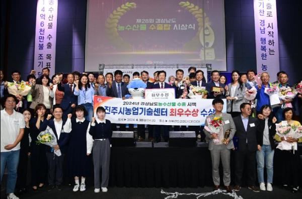 진주시는 30일 창원컨벤션센터에서 관계자 200여 명이 참석한 가운데 열린 ‘제28회 경상남도 농수산물 수출탑 시상식’에서 농수산물 수출 시책평가 ‘최우수상’을 수상했다.