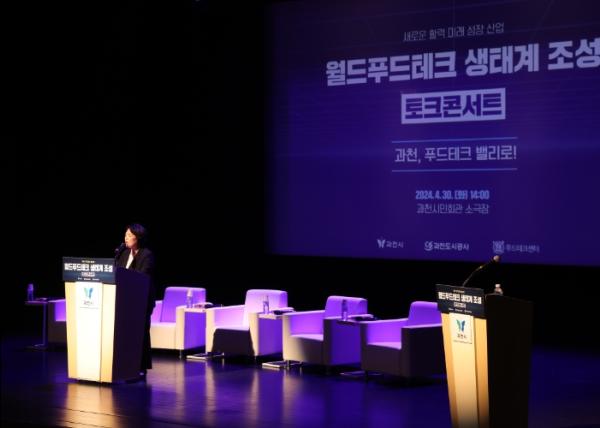 과천시가 푸트테크 기업 유치를 통한 산업 생태계 조성을 위해 다각도의 노력을 기울이는 가운데, 30일 과천시민회과 소극장에서 ‘과천, 푸드테크 밸리로!’라는 주제의 토크콘서트를 열었다.