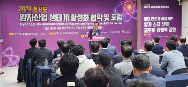 경기도·경기도의회는 30일 한국나노기술원 대강당에서 한국나노기술원이 주관하고 성균관대가 후원하는 ‘경기도 양자산업 생태계 활성화 협약 및 포럼’을 개최했다.
