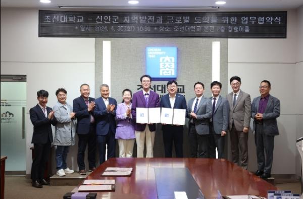 신안군은 지난 4월 30일에 조선대학교 본관 청출어룸에서 지역발전과 글로벌 도약을 위해 상호협력하기로 업무협약을 체결했다.