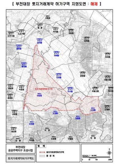 이번에 해제되는 구역은 부천대장 공공주택지구인 고강동, 대장동, 오정동, 원종동, 삼정동 일원이다. 이로써 부천시 전역이 토지거래허가구역에서 풀리게 됐다.
