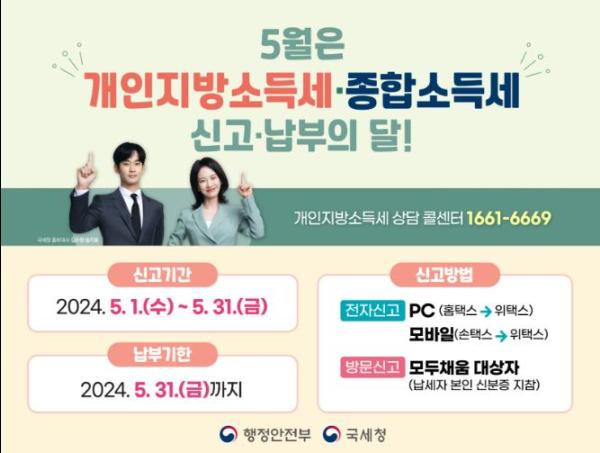 공주시는 ‘5월 종합소득세·개인지방소득세 신고의 달’을 맞아 5월 1일부터 31일까지 개인지방소득세 확정신고 창구를 설치·운영한다고 밝혔다.