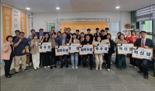 최종 8개 팀을 살펴보면 ▲대상에 폐소재 활용 업사이클링 주얼리(주식회사 스몰스텝스) ▲최우수상(2개팀)에 일산화탄소 자동감지 배출기(주식회사 아웃비스트 팀), 치매예방을 위한 노년층 목공교육(작은나무 사회적협동조합 팀) ▲우수상(3개팀)에 밭에 떨어진 별난 일기콘텐츠 제작(RUK 팀), 어른이들을 위한 워크북 및 콘텐츠 개발(어른이놀이터 팀), 여성 정보기술(IT)과 빅데이터 결합 네트워킹 플랫폼(하이사라 팀), ▲혁신상(2개팀)에 아파트 중간 차음제 개발(바이브 팀), 반려동물 펠트공예지도사 양성 플랫폼(한국반려동물펠트공예교육원 팀) 등이 좋은 평가를 받아 수상의 영예를 안았다.