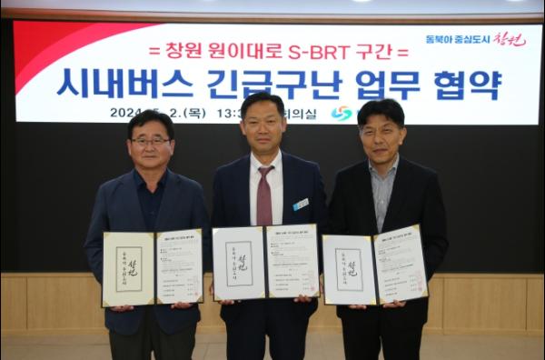 창원특례시는 5월 중 계통 예정인 원이대로 S-BRT (가음정사거리 ~ 도계광장) 9.3km 구간 버스 중앙차로제 시행에 맞추어 버스 전용차로에서 발생할 수 있는 사고나 고장에 신속한 현장 대응을 위해 업무협약을 체결했다.