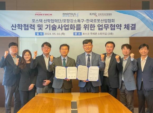 포항강소특구육성센터는 2일 포스텍산학협력단, 한국로봇산업협회와 로봇·자율주행·AI 분야 기술사업화 산학협력 체계 구축을 위한 업무협약을 체결했다