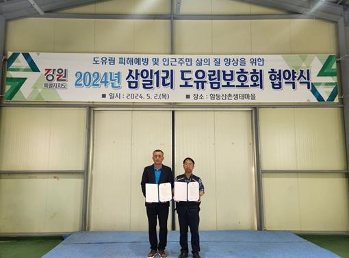 강원특별자치도 산림과학연구원은 도유림 인근마을 주민 소득창출과 도유림의 산림보호를 위하여 5월 2일 화천군 사내면 삼일1리 함동산촌생태마을에서 도유림 보호협약을 체결했다고 밝혔다.