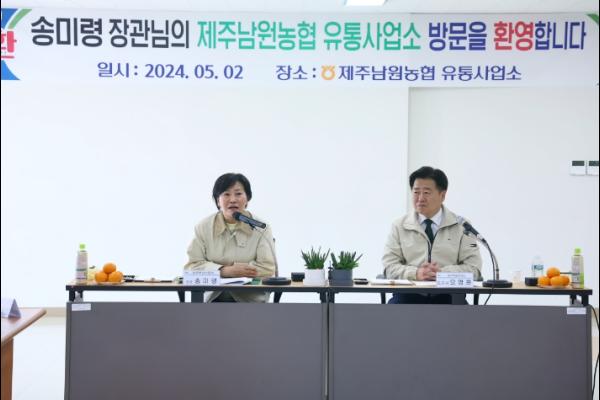 5월 2일 제주를 찾은 송미령 농림축산식품부 장관은 하우스감귤 재배농가와 남원농협 농산물산지유통센터(APC, Agriculture Product Processing Center)를 방문하여 현장의 애로사항을 청취하고, 제주 농산물 생산·유통 관계자들을 격려했다.