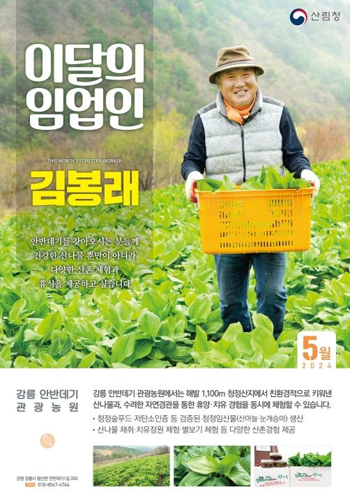 산림청은 ‘이달의 임업인’으로 강원 강릉의 ‘안반데기’에서 산나물을 재배하는 임업인 김봉래(58세, 강릉안반데기관광농원) 대표를 선정했다고 2일 밝혔다.