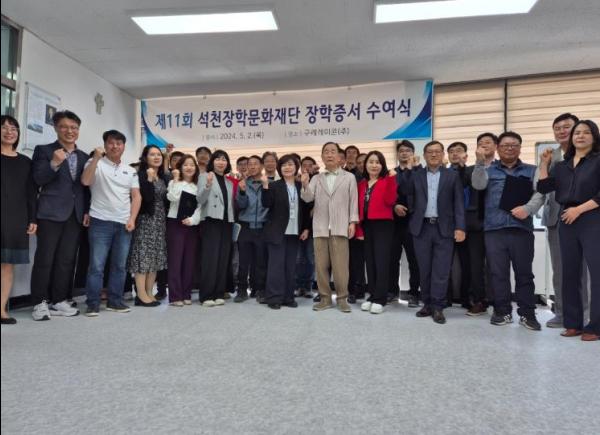 (재)석천장학문화재단은 국가 발전에 이바지할 수 있는 인재 양성을 위해 2014년에 설립됐으며, 작년까지 1억 7천3백만 원 장학금을 179명의 학업성적 우수자 및 장애인 등 취약계층 학생에게 전달했다.