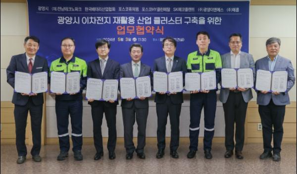 광양시는 3일 시청 접견실에서 이차전지 재활용 산업 클러스터를 구축하기 위한 업무협약을 체결했다고 밝혔다.