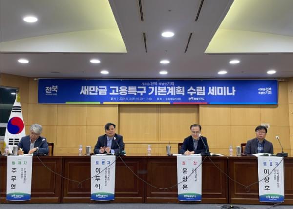 전북자치도는 새만금개발청, 고용부 전주·군산고용지청, 도 교육청, 유관기관 등 30여명이 참석한 가운데 3일 ‘새만금 고용특구 기본계획 수립’세미나를 개최했다.