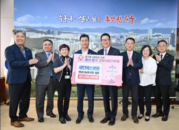 세민에스요양병원 청남나눔봉사회가 5월 3일 오전 10시 중구청 구청장실을 방문해 고향사랑기부금 320만 원을 기탁했다.