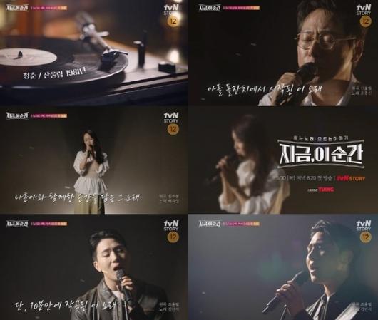tvN STORY 신규 음악 예능 아는 노래, 모르는 이야기 ‘지금, 이 순간’이 5월 30일(목) 저녁 8시 20분 첫 방송을 확정하고 명곡 가창 티저 영상 3종을 공개했다.