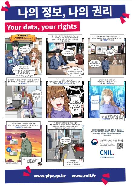 개인정보보호위원회와 프랑스 국가정보·자유위원회(위원장 마리 로 드니)는 5월 5일 공동보도문을 통해 양 기관이 공동 제작한 아동·청소년 인식 제고 웹툰 포스터를 발표했다.
