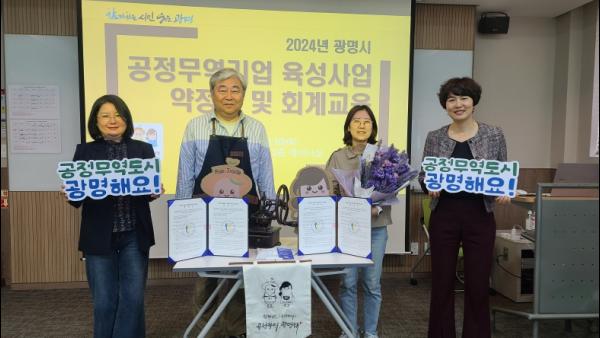 시는 관내 사회적경제기업을 대상으로 공정무역기업 육성사업 공모를 진행해 ㈜미앤드, 커피노마드를 선정하고 지난 3일 광명시 창업지원센터 2층 세미나실에서 약정식을 진행했다.