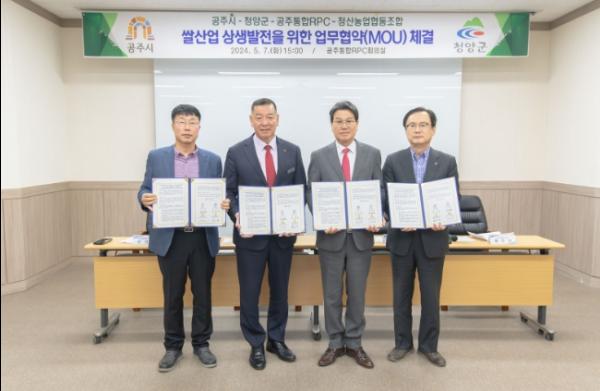공주시는 지난 7일 청양군 및 공주통합미곡종합처리장(RPC) 정산농협과 쌀 산업 상생발전을 위한 업무협약을 체결했다.