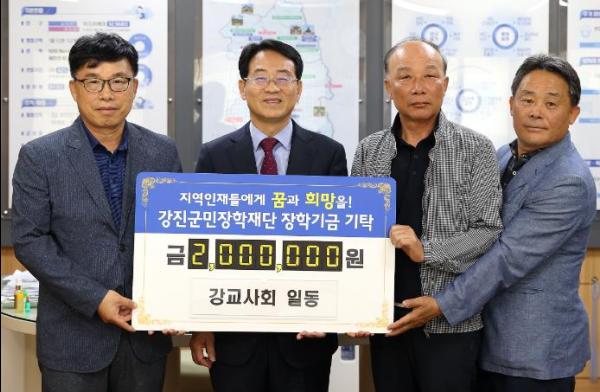 2012년도에 결성한 강진교육사랑회는 스승의 날을 맞아 제자들을 위해 장학금을 기탁했다.