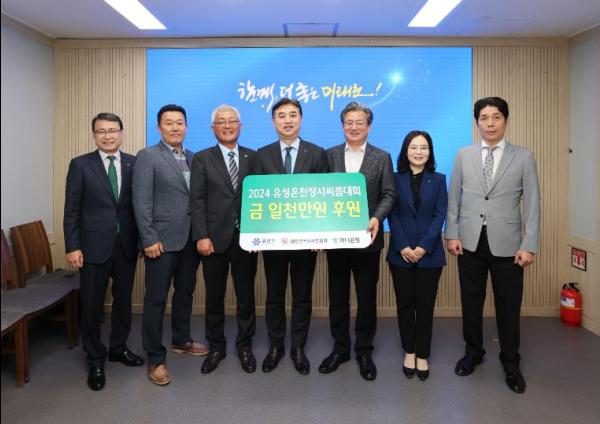 대전 유성구가 7일 하나은행 충청영업그룹(대표 이동열)에서‘2024 유성온천장사씨름대회’의 성공적인 개최를 위한 후원금 1,000만원을 대전광역시 씨름협회에 기탁했다고 전했다.