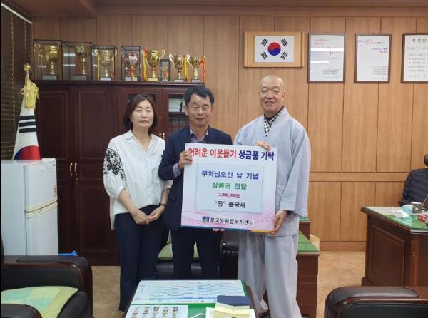 신라천년의 전통사찰 불국사에서는 지난 7일 부처님 오신 날을 맞이해 불국사 행정복지센터를 방문해 어려운 이웃을 위해 농협상품권 300만원(10만원권 30장)을 기탁했다.
