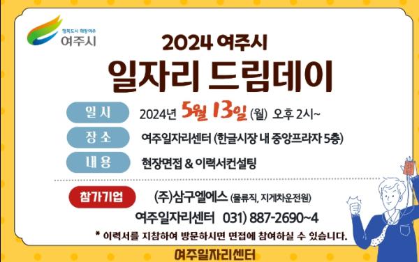 여주시는 5월 13일 여주일자리센터에서 2024년 5월 일자리드림데이를 실시한다고 밝혔다.