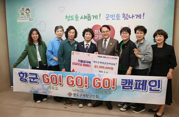 청도군은 지난 8일 청도군재향군인여성회에서 지역사회에 공헌하고 시민들과 함께하는 ‘가꾸고, 나누고, 기억하는’봉사활동인‘향군 GO! GO! GO!’캠페인의 일환으로 국가적 과제인 저출생 극복에 기여하고자 성금 100만 원을 기탁했다고 밝혔다.